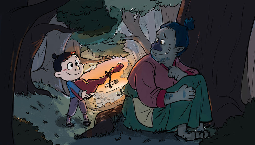 Gobi is a dokkaebi, a lonely goblin living in the woods with transformative powers with his magical wooden bat.